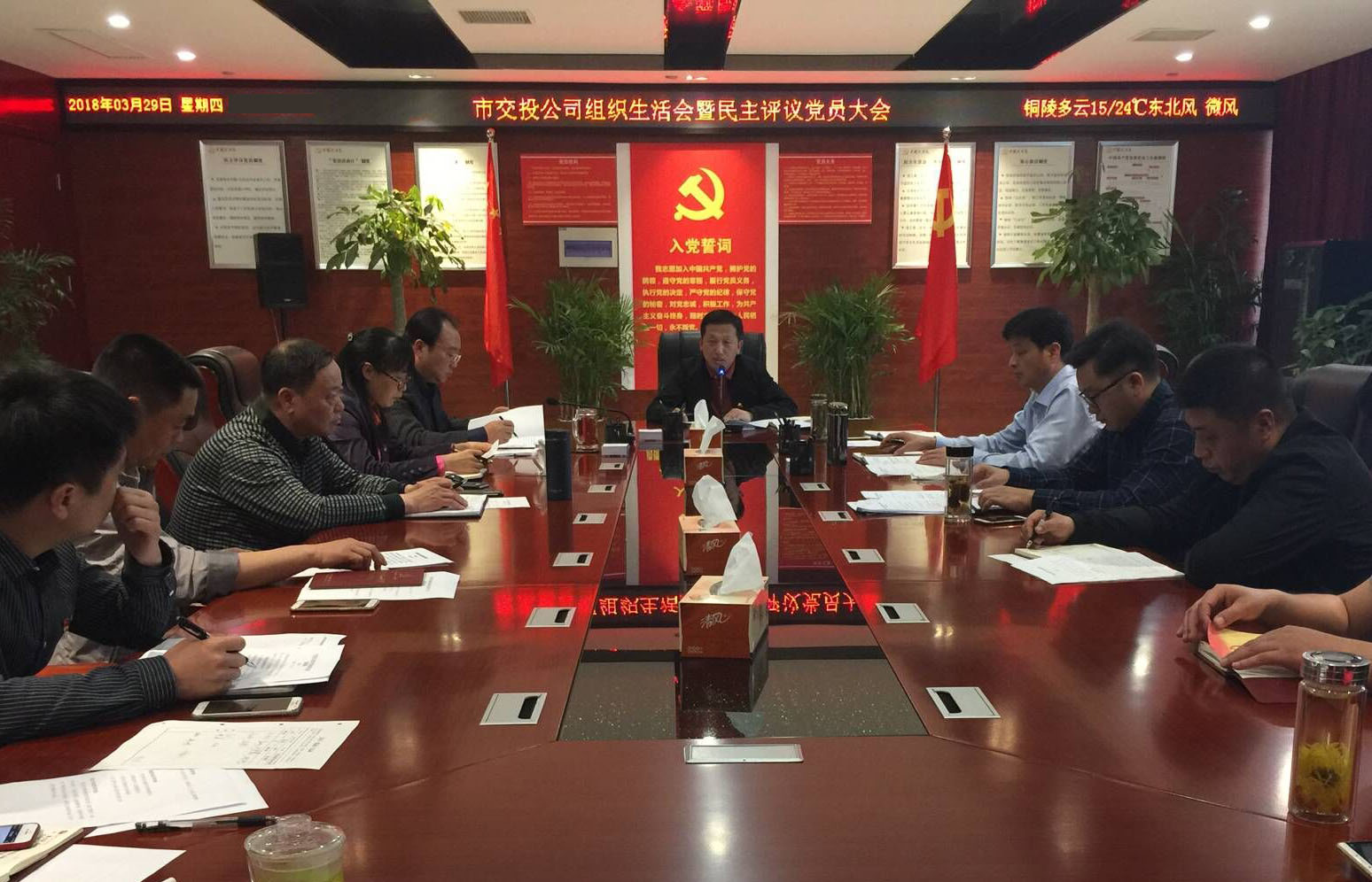 根據市委組織部工作要求,3月29日下午,市交投公司機關黨支部召開2017年度組織生活會暨民主評議黨員大會,公司黨工委班子成員以普通黨員身份參加會議。會上,黨支部書記帶頭作批評與自我批評,其他黨員同志依次進行對照檢查和自我批評,并填寫民主評議表。最后,公司黨工委書記、董事長何成龍同志對會議召開和對照檢查情況作點評,何成龍書記對機關黨支部成立以來所做的工作給予充分肯定,并就做好公司黨建工作提出四點要求:要進一步落實支部黨建工作要求,要進一步加強支部隊伍建設,要進一步增強支部黨建工作實效,要進一步發揮黨員先鋒模范作用,為公司深化改革、轉型發展提供堅強的思想基礎和組織保障。機關黨支部書記表示,將以此次會議召開為契機,認真落實黨工委何成龍書記提出的期望和要求,進一步創新方式、方法,積極推進公司黨建工作,為公司轉型發展做出更多貢獻。