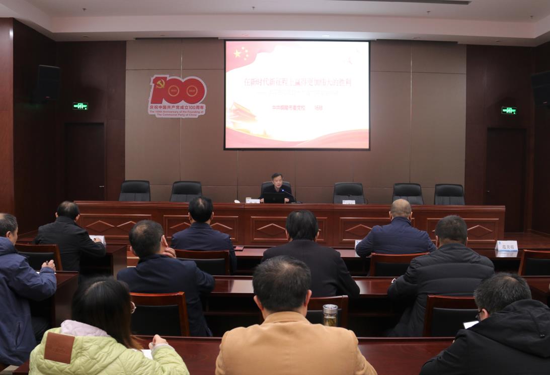 楊陟教授以“在新時代新征程上贏得更加偉大的勝利”為題,從總體把握黨的十九屆六中全會的主要內容、全面認識中國共產(chǎn)黨奮斗的偉大成就、充分領會中國共產(chǎn)黨百年奮斗的歷程、深刻理解中國共產(chǎn)黨百年奮斗的重大意義四個方面進行了深入解讀。既有客觀理性的分析,又有具體生動的說明,深入淺出,具有很強的針對性、指導性。