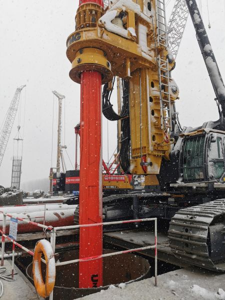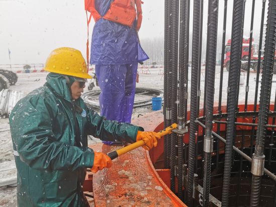 中新網(wǎng)安徽新聞2月7日電 (通訊員趙懿 完顏亮) 2月7日上午,連續(xù)十幾個(gè)小時(shí)大雪后,地上積雪已達(dá)到七八厘米厚,中鐵大橋局G3銅陵公鐵長(zhǎng)江大橋現(xiàn)場(chǎng)在大雪中大干。3#主墩,5臺(tái)旋挖鉆在同時(shí)施工,工人們冒著寒冷和大雪在安裝鉆孔樁的鋼筋籠。項(xiàng)目部為工人配發(fā)了雨衣、保溫棉服等御寒安全用品,保障安全作業(yè)。