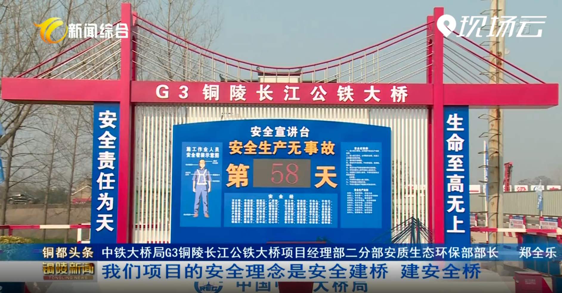 中鐵大橋局G3銅陵長江公鐵大橋項目經(jīng)理部二分部安質(zhì)生態(tài)環(huán)保部部長鄭全樂:我們項目的安全理念是安全建橋、建安全橋,確保現(xiàn)場工作當(dāng)中安全隱患能及時發(fā)現(xiàn),及時解決,確保工人在作業(yè)過程中能有一個良好的、安全的工作環(huán)境。